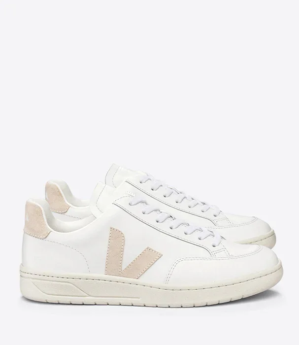 סניקרס V-12 EXTRA-WHITE SABLE לגברים של מותג ההנעלה הצרפתי וג'ה, נעליים העשויות מחומרים המתחשבים בסביבה במקסימום איכות. קלאסיות ויפות, עם לוגו V בצבע בז'.