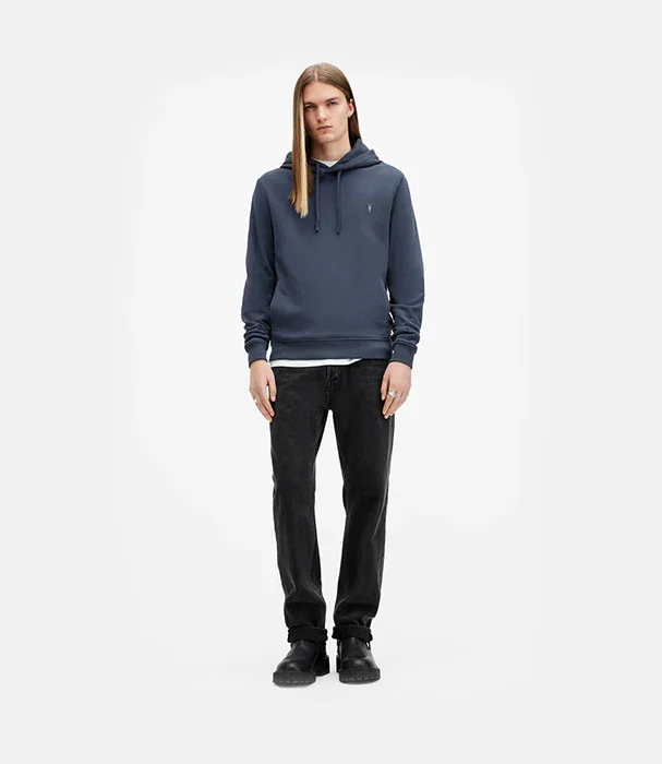 אול סיינטס קפוצ'ון RAVEN OTH HOODY לגברים, קפוצ'ון בצבע כחול עם שרוולים ארוכים בשילוב כובע ולוגו המותג בקטן מקדימה, עם גומי בחלקו התחתון, עשוי מ100% כותנה איכותית במיוחד.
