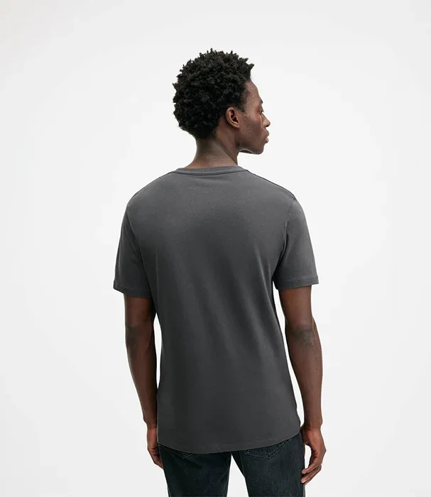 | טי-שירט BRACE SS CREW לגברים של מותג האופנה הלונדוני ALL SAINTS, חולצת טי-שירט עם שרוול קצר בצבע אפור עם לוגו רקום בחזית וצווארון עגול. |