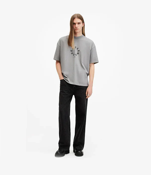 אול סיינטס טי-שירט לוגו FRAKTUR SS CREW לגברים, חולצת טי-שירט בצבע אפור עם שרוולים קצרים בגזרת אוברסייז, הדפס הלוגו מקדימה וצווארון עגול. החולצה עשויה מכותנה איכותית במיוחד.