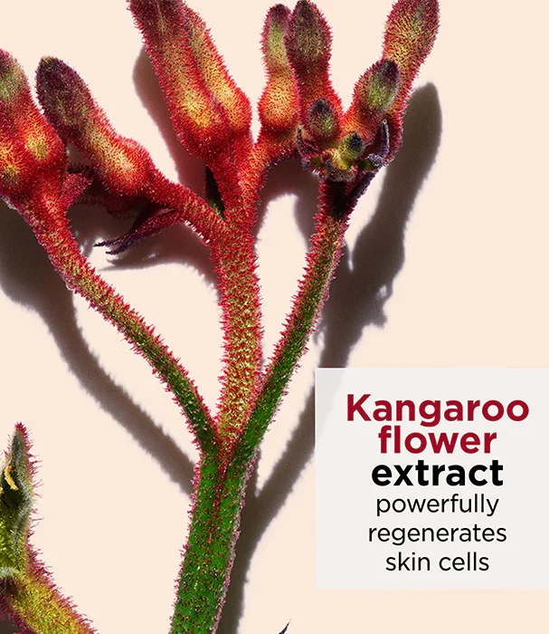 חדשנות קלרינס בנושא ייצוב העור: תמצית פרח הקנגרו, מסייעת, להילחם במראה עור נפול ומעניקה מראה תפוח.