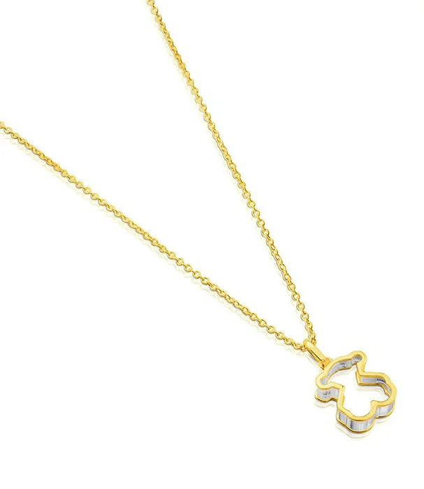 שרשרת לנשים מקולקציית גלקסי הוותיקה שלנו, מבית התכשיטים והאופנה טואוס. השרשרת עשויה מורמייל- זהב 18K היושב על כסף סטרלינג 925 בשילוב תליון בצורת הדובי עשוי ממטקרילט המעניק לו את צבעו השקוף TOUS GALAXY NECKLACE IN VERMEIL SILVER גודל: 1.2 ס"מ, אורך: 45 ס"מ.