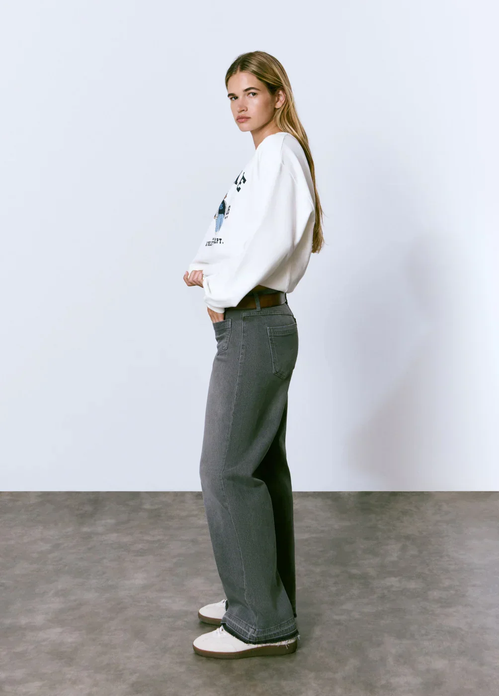 בראוני ג'ינס מתרחב לנשים של מותג האופנה הספרדי בראוני, עשויים מכותנה בצבע אפור כהה, בסיומת מתרחבת במראה הפוך, עם מקום לחגורה וכיסים קדמיים ואחוריים, בסגירת רוכסן וכפתור.